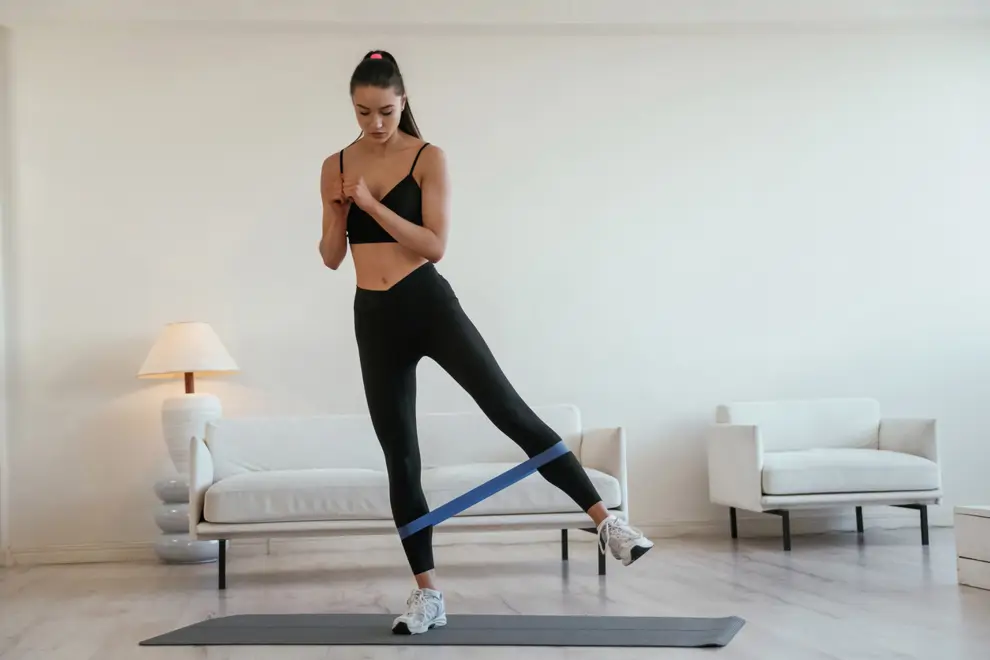 - Coloca una banda elástica alrededor del tobillo de la pierna a trabajar y asegúrala por detrás o pisa el extremo opuesto.