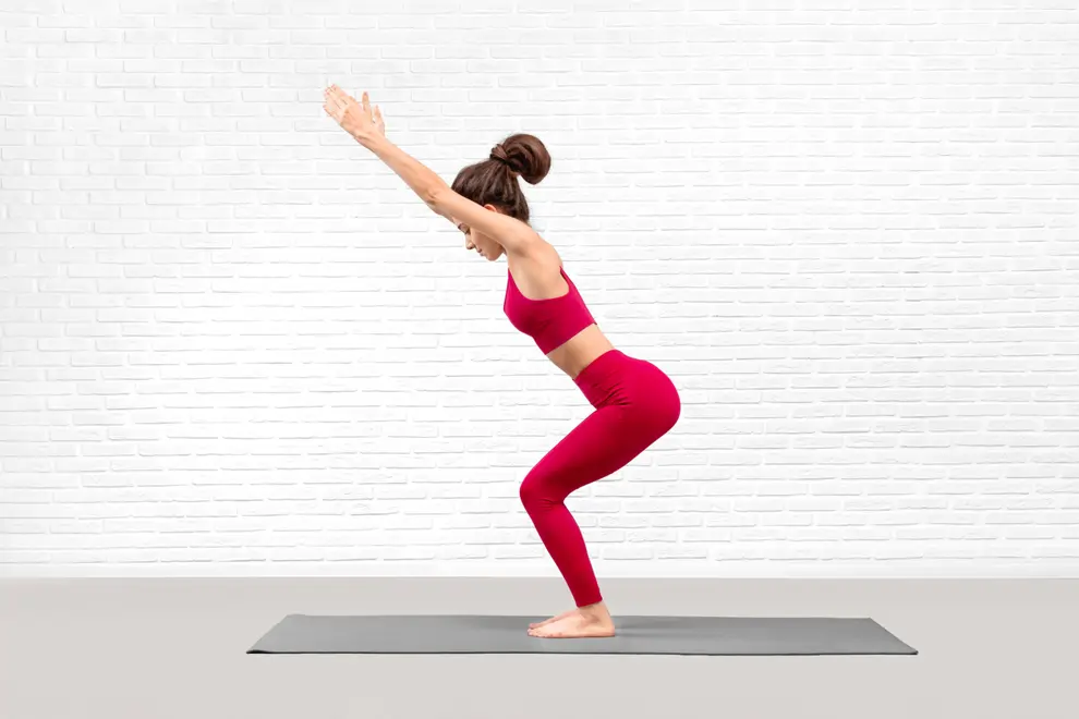 Una postura centrada en el equilibrio. lo que mejora la concentración y la estabilidad y fortalece los tobillos y las pantorrillas.