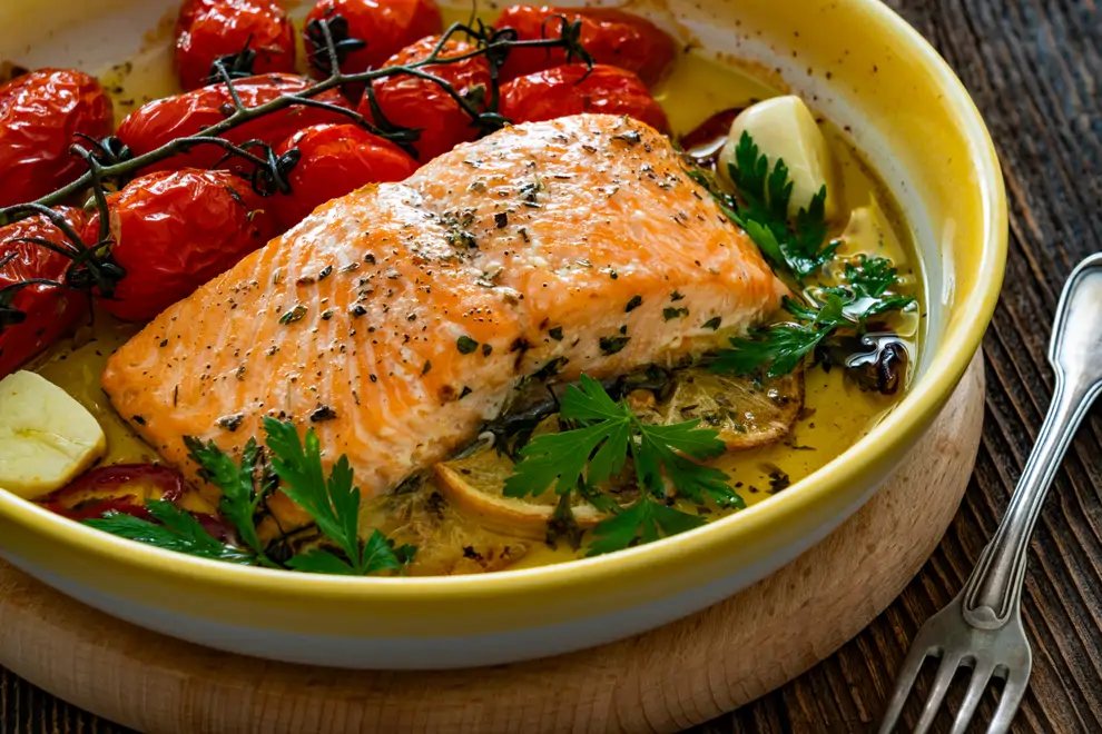 Aunque puedes hacer muchas recetas con salmón como ingrediente principal, te sugerimos esta con verduras. el salmón es rico en ácidos grasos omega 3esencial para la salud cardiovascular y cerebral, y proporciona proteínas de alta calidad. Las verduras al horno complementan el plato con fibra, vitaminas y minerales, haciendo que la cena sea ligera, sabrosa y fácil de preparar incluso en los días en los que hay poco tiempo.