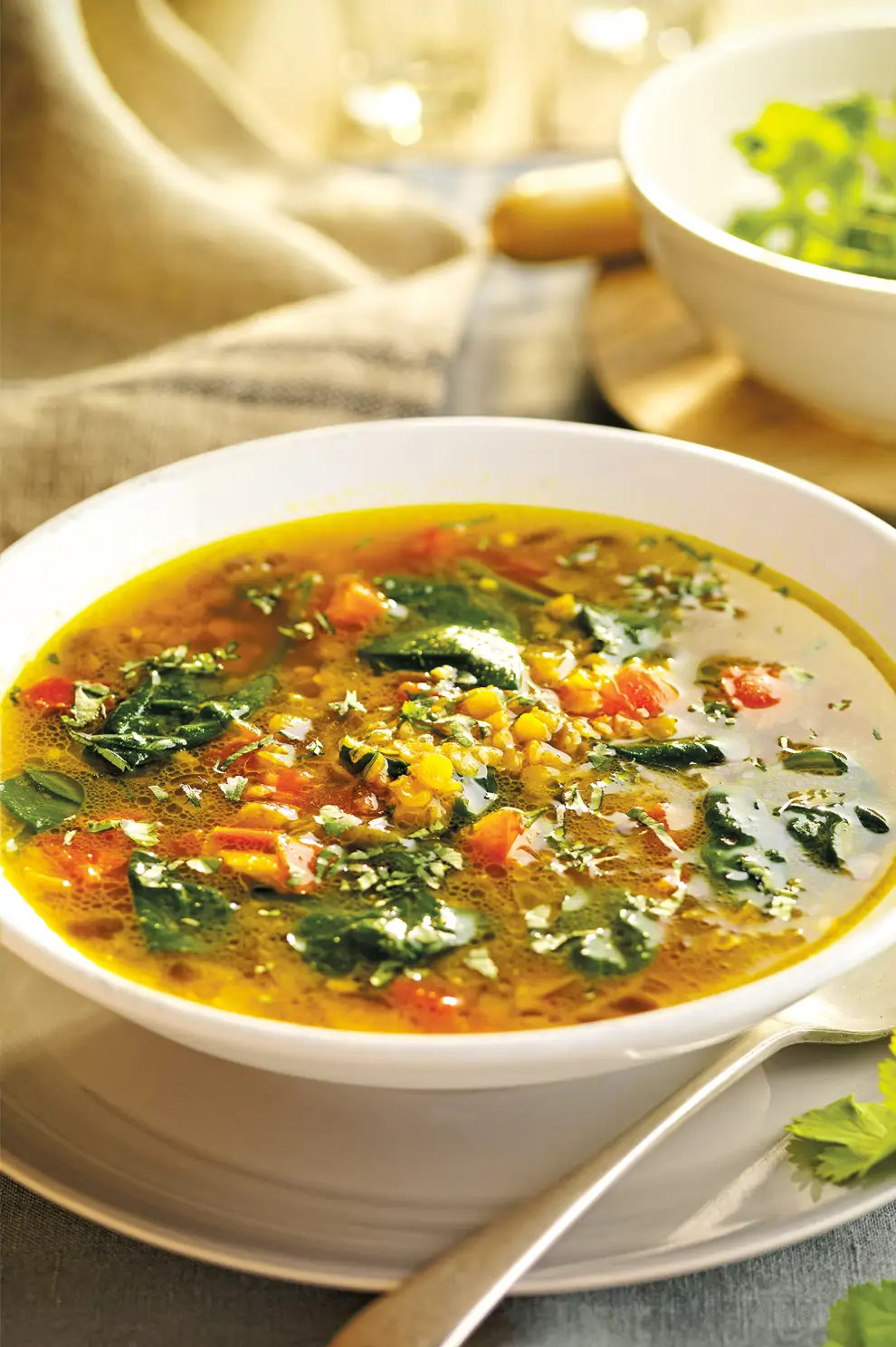 Combinaciones de sopa de lentejas Proteínas vegetales, fibras y minerales. como el hierro y el magnesio con el poder hidratante del caldo de verduras. Es ligero, fácil de digerir y reconfortante, ideal para una noche tranquila en casa. La adición de especias suaves y un toque de limón realza su sabor y favorece la absorción de nutrientes.