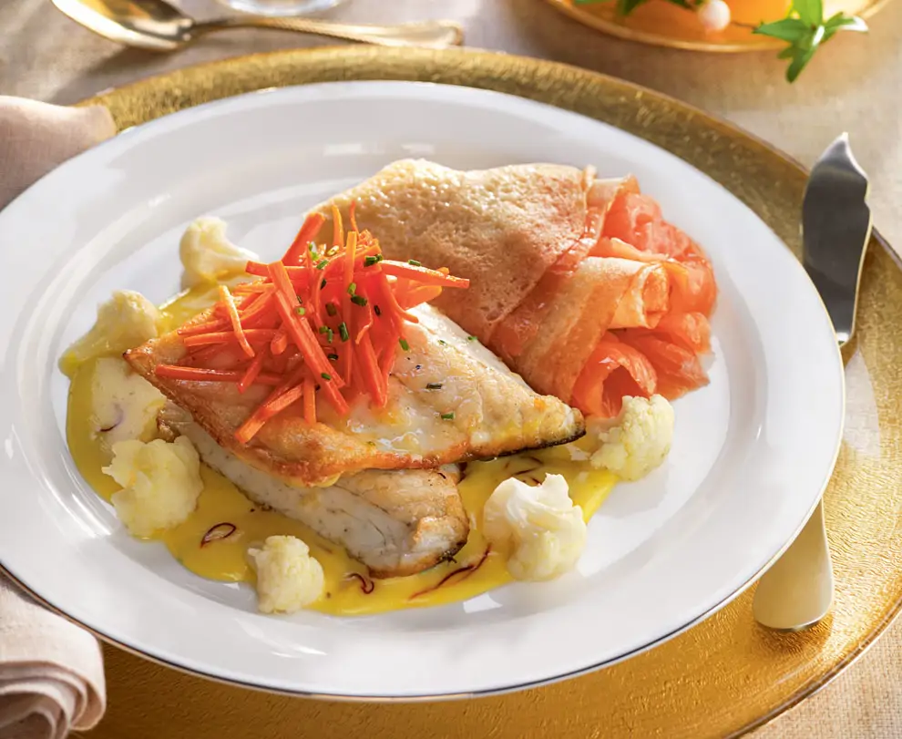 7. Lubina con salsa de azafrán