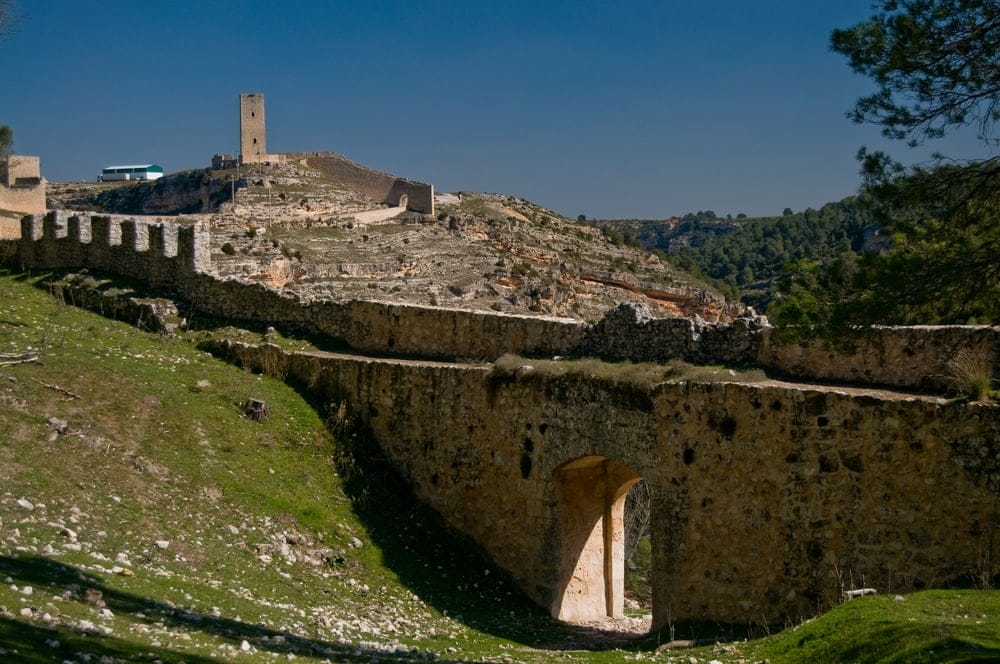 Y el Castillo de Alarcón es una fortaleza que, durante siglos, ha dominado con autoridad su entorno geográfico. Este edificio fue el centro de un sistema defensivo que aún hoy se puede admirar: hasta tres murallas concéntricas con tres puertas –Puerta del Calabozo, Puerta del Bodegón y Puerta del Campo– a las que hay que sumar dos torres de vigilancia –Torre de Cañavete y Torre de los Alarconcillos– que servían como atalayas para controlar el valle. Para ver todo este marco defensivo y la fantástica naturaleza que lo rodea, te recomendamos acercarte al mirador que se encuentra al este del castillo.