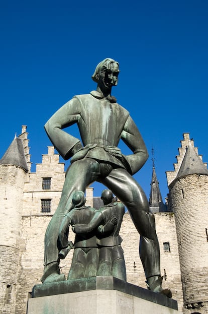 En Amberes amamos tanto las esculturas como las leyendas de gigantes. En la margen derecha del Escalda y protegiendo la entrada al antiguo castillo Steen, el edificio más antiguo de la ciudad, se encuentra la estatua. Lange Wapper, otro personaje del folklore flamenco al que se le atribuyen muchas historias, obra de 1962 de Albert Poels.