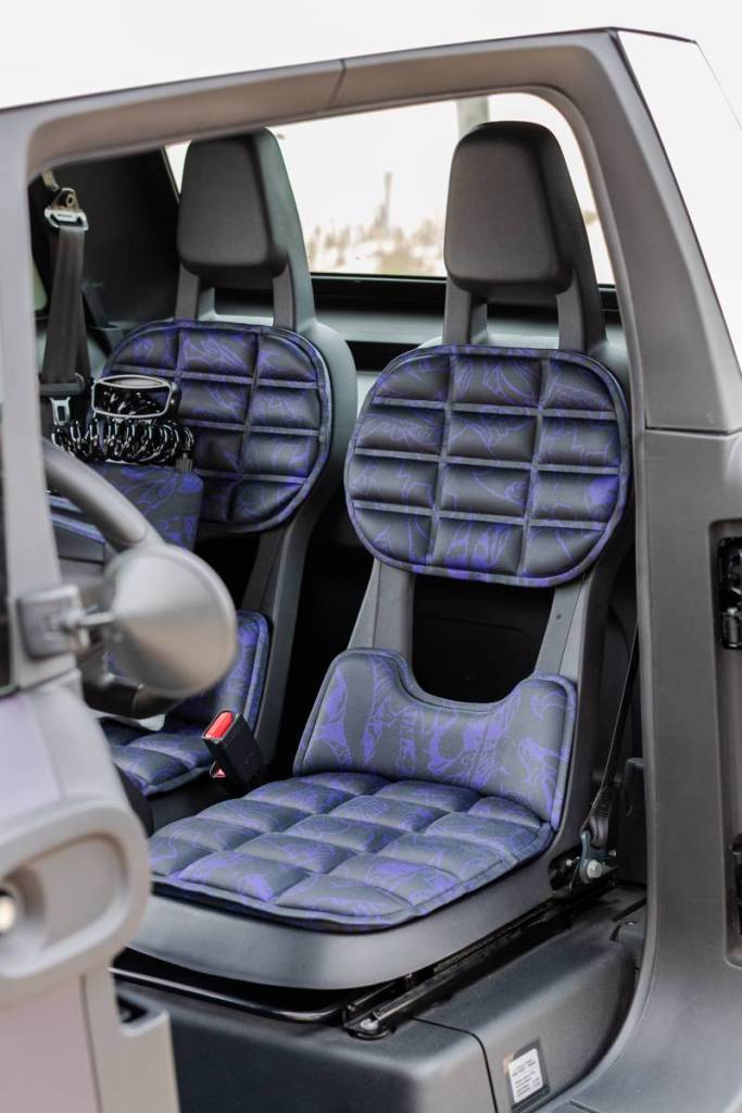 Él Amigo Buggy Rip Curl Vision Es un homenaje visual al verano. Su carrocería en morado oscuro contraste con un techo blanco transitable y una lona negra inspirada en el mundo náutico. En el frente, un barra de LED blanca ilumina las noches a lo largo de la costa, creando una atmósfera de aventura sofisticada. Cada línea, cada textura parece diseñada para capturar la luz del atardecer.