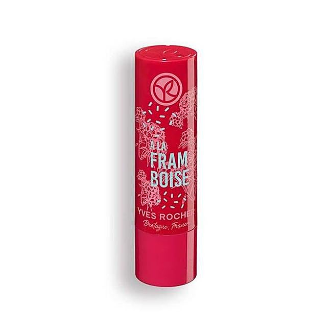 Yves Rocher Raspberry Lip Balm es un bálsamo labial con un 97% de ingredientes de origen natural, de textura fundente y aroma irresistible. Y su frescura helada, sutilmente combinada con la frescura picante de la frambuesa, crea un cóctel chispeante de dinamismo. Precio: 3,99 euros.