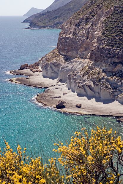 Es la cala más atractiva del parque natural para los visitantes en general y también para los geólogos: 130 metros de arena gris ceniza, entre deslumbrantes acantilados blancos y aguas cristalinas de color esmeralda. Unos ven en ella lo más parecido que hay en la Península a una cala balear. Los otros, un museo de geología al aire libre, una gliptoteca de caprichosas formaciones erosionadas, de esculturas pétreas.