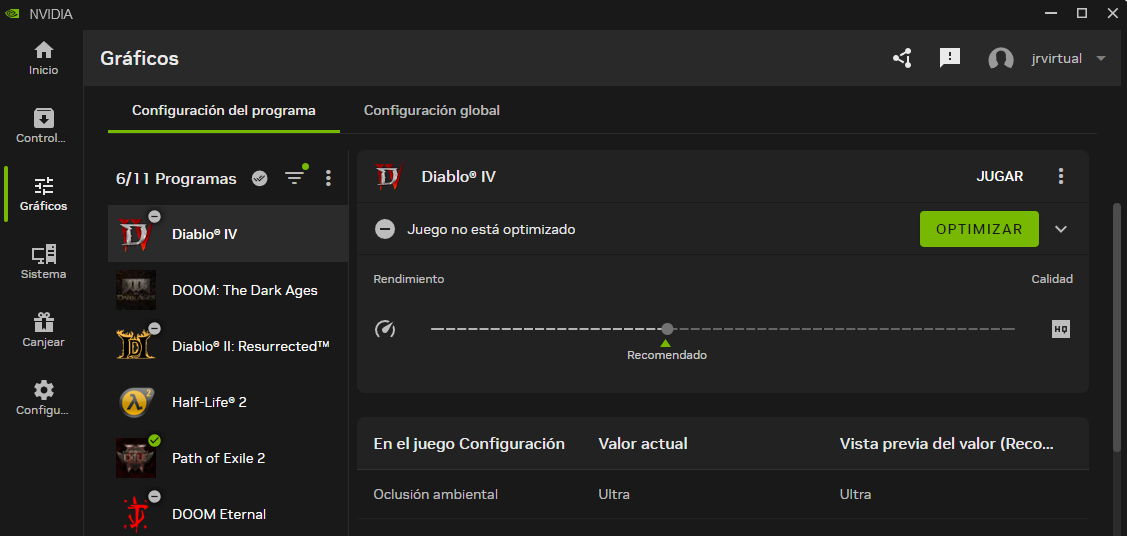 La aplicación de escritorio de NVIDIA incluye una sección de optimización automática de juegos que facilita la administración de todos los juegos instalados, incluidas las aplicaciones. Esta herramienta es Esto ayuda mucho si no desea detenerse y optimizar cada parámetro de configuración..