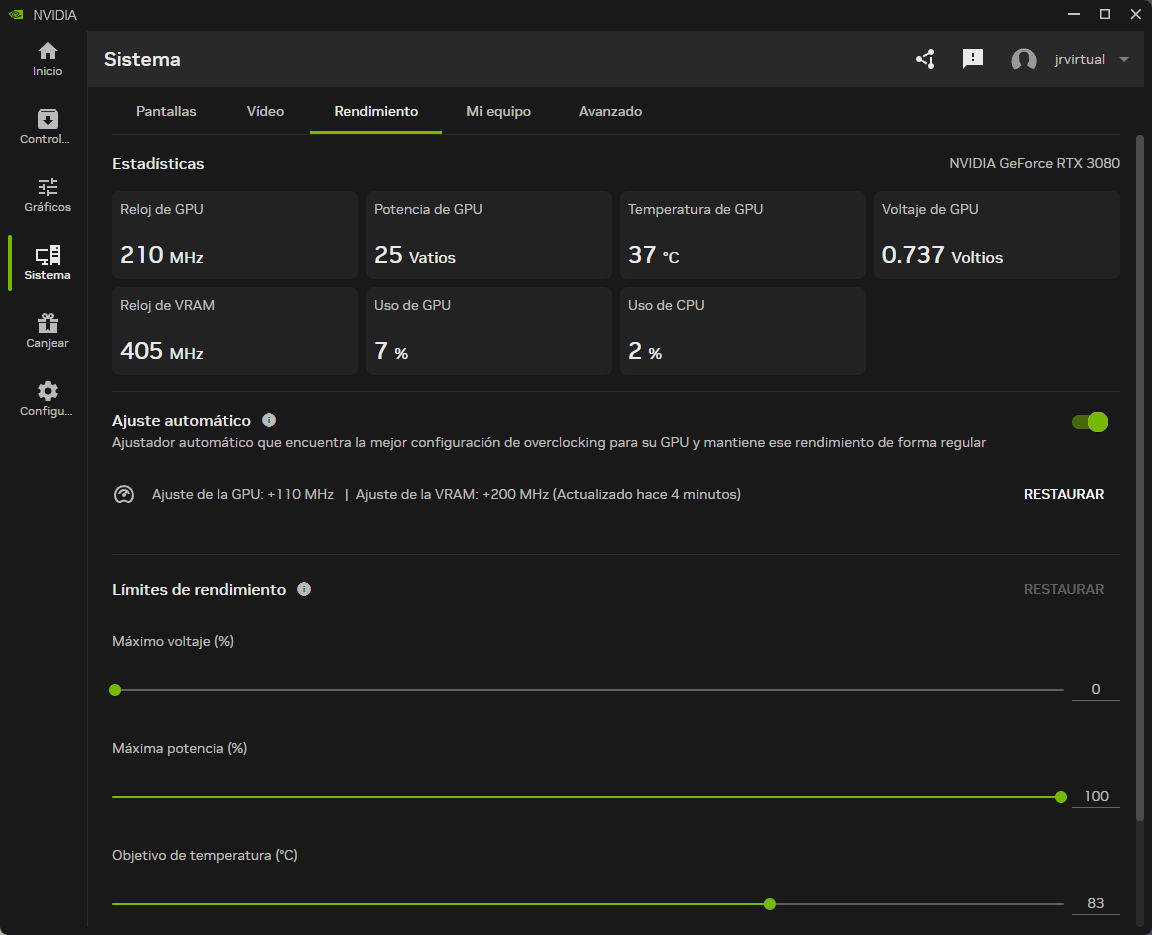 Otra característica avanzada de la aplicación NVIDIA es el escalador automático, que se puede encontrar Mejores configuraciones de overclocking Utilice algoritmos de búsqueda avanzada y perfiles de ajuste de GPU administrados por el usuario. Ajuste las frecuencias del núcleo de gráficos y de la memoria VRAM para controlar la temperatura y el voltaje. Los usuarios pueden establecer objetivos de velocidad del ventilador. Una forma de «activar» la funcionalidad de los gráficos, pero de forma segura y con solo hacer clic en un botón.
