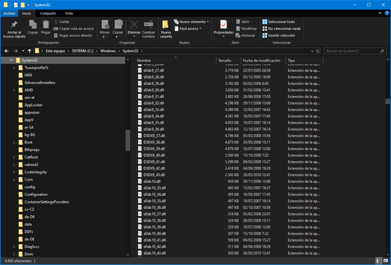 Aunque esta es la última versión instalada, también es la versión que Windows prefiere usar en juegos compatibles. No es raro que también tengas otras versiones instaladas.. La explicación es que cada juego depende de una versión diferente de DirectX. Por ejemplo, si un desarrollador escribe un juego que utiliza DirectX 11 actualización 40, solo funcionará esa versión, no las versiones posteriores. Por lo tanto, cada vez que instalas un juego nuevo, especialmente uno antiguo, es probable que se instale una nueva versión de la API. Estas bibliotecas se encuentran en C:\Windows\System32 o/y C:\Windows\SysWOW64.