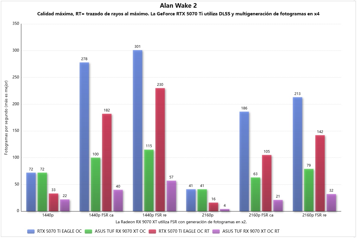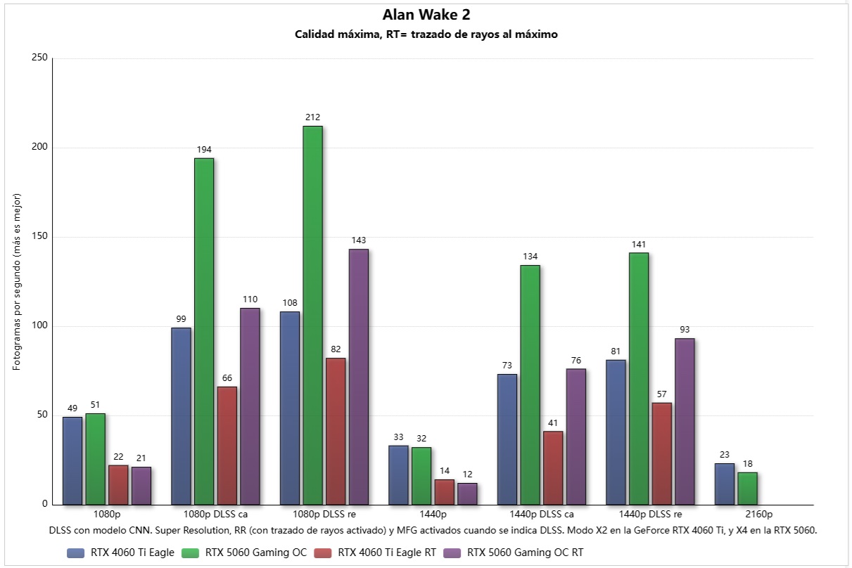 Sin embargo, esto no quiere decir que el rendimiento en trazado de rayos no importe. Esta tecnología puede mejorar mucho la calidad de imagen en determinados juegos, como Alan Wake 2, DOOM The Dark Ages, Cyberpunk 2077 y Dying Light 2, entre otros, así que representa un valor que debemos tener en cuenta.