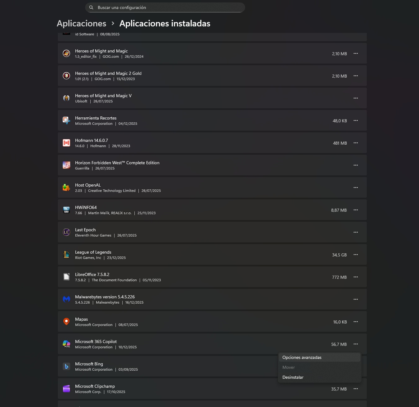 • Las opciones avanzadas aparecen cuando haces clic en el ícono de tres puntos de algunas aplicaciones. Haga clic en esta opción.