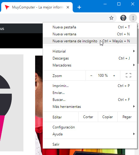 - Google Chrome. Utilice las teclas «Ctrl + Shift + N» o haga clic en Herramienta de configuración (Personalizar y controlar Google Chrome) > «Nueva ventana de incógnito» en la esquina superior derecha para un acceso rápido. Además de la funcionalidad básica (no guardar el historial de navegación, cookies, formularios, etc.), Chrome también desactiva los complementos instalados. También advierte que la actividad no es 100% privada y aún puede ser visible para tu ISP, empresa o centro educativo si estás en su red.