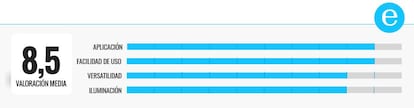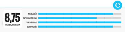 Es un poco pesado y su diseño está pensado para disipar el calor fácilmente: su filtro exterior está hecho de un material muy transparente que difunde la luz, y su construcción de aluminio está recubierta de plástico. Además de elegir el color en el que se ilumina, también es posible ajustar la temperatura entre 1700 y 6500K y adaptar su brillo entre un mínimo de 80 lúmenes y un máximo de 800. Todo este control es manual, aunque también ofrece opciones preprogramadas, incluyendo por ejemplo un modo amanecer que imita los primeros rayos del sol o modo atardecer para crear un ambiente acogedor antes de acostarse. Se puede controlar por voz. Asistente de Google o AmazonAlexa.