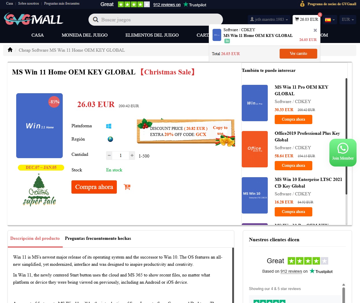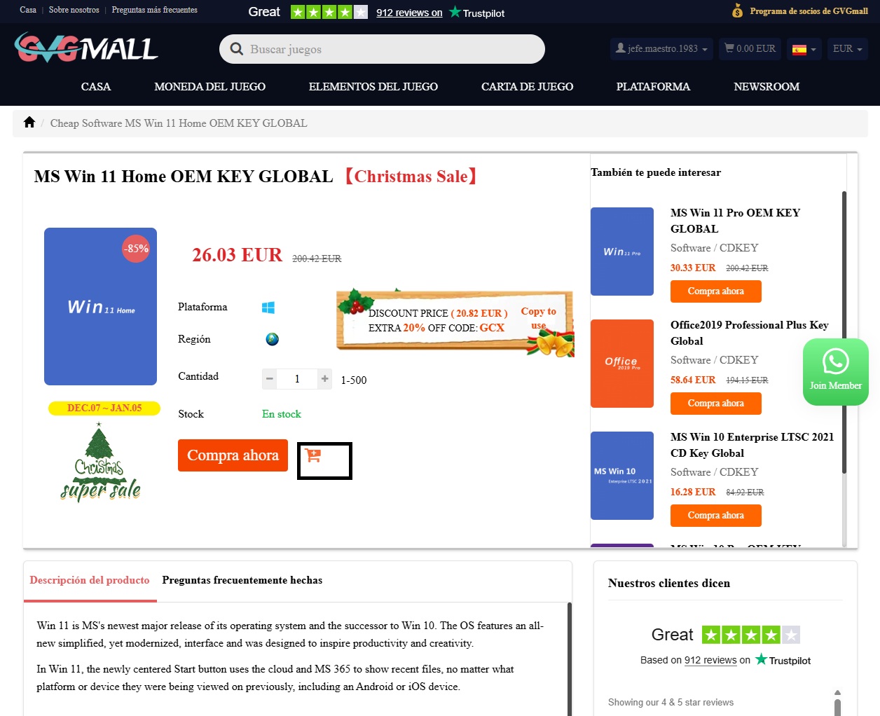 Como dijimos al principio del artículo, GVGMall está llevando a cabo una campaña activa. Oferta especial por Navidad. Con él podrás conseguir licencias para activar productos de Microsoft, como diferentes versiones de Windows y Office, a muy buenos precios.