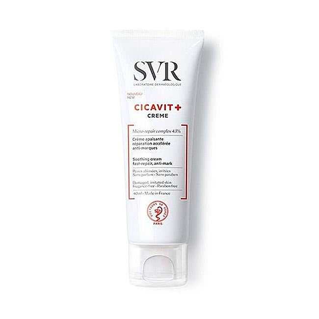 Cicavit SVR trata rojeces, grietas, sensación de calor, enrojecimiento de las nalgas, marcas de varicela, tatuajes, procedimientos postdermatológicos (peeling, láser), inflamaciones, quemaduras solares, depilación, afeitado. Acelera la reparación de la piel X7 y calma intensamente la piel dañada e irritada para toda la familia. Su plus: acción antimarcas y antiirritaciones mejorada para una cicatrización sin marcas y sin rojeces. Su textura fundente proporciona confort y protección inmediata. Precio: 9,99 euros.