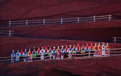 El lugar es un caos de novias y novios, que pasan horas tomando la foto perfecta con la ayuda de un fotógrafo y estilista. Muchos también frecuentan los restaurantes que bordean la costa y ofrecen carne de yak. Cerca de allí, en un monumental escenario de piedra artificial, cientos de extras presentan un espectáculo épico sobre la historia de la nación Naxi. El espectáculo Impresiones de Lijiang es una producción del gran cineasta Zhang Yimou –encargado también de las ceremonias de apertura y clausura de los Juegos Olímpicos de Beijing en 2008– y pese a su grandioso despliegue, deja poco sabor. Es decir, se le da al espectador el tiempo justo para seguir rastreando los infinitos secretos de estas remotas regiones de la China profunda.