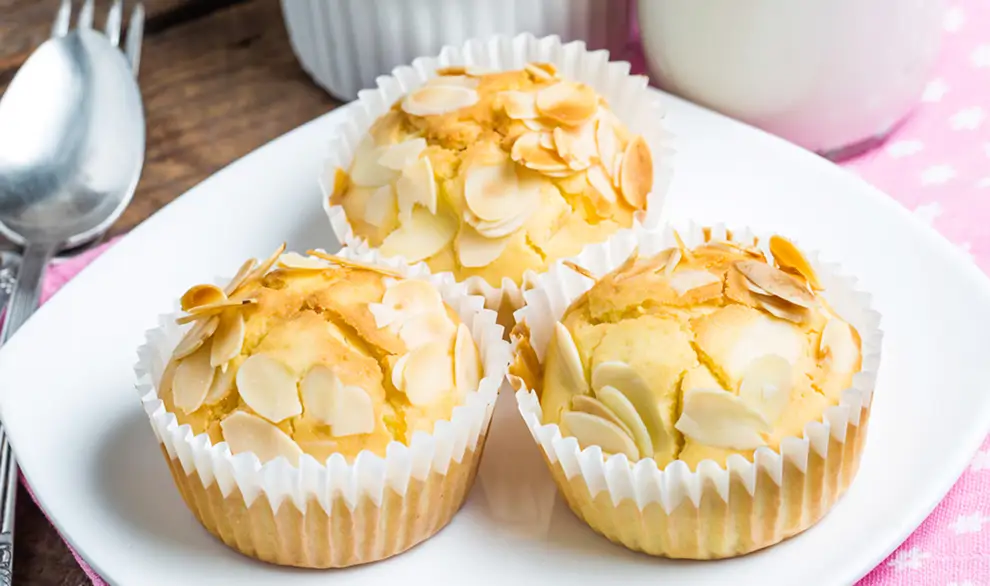 Esta receta combina harina de almendras y harina de arroz integral para obtener magdalenas tiernas y aromáticas sin necesidad de gluten.