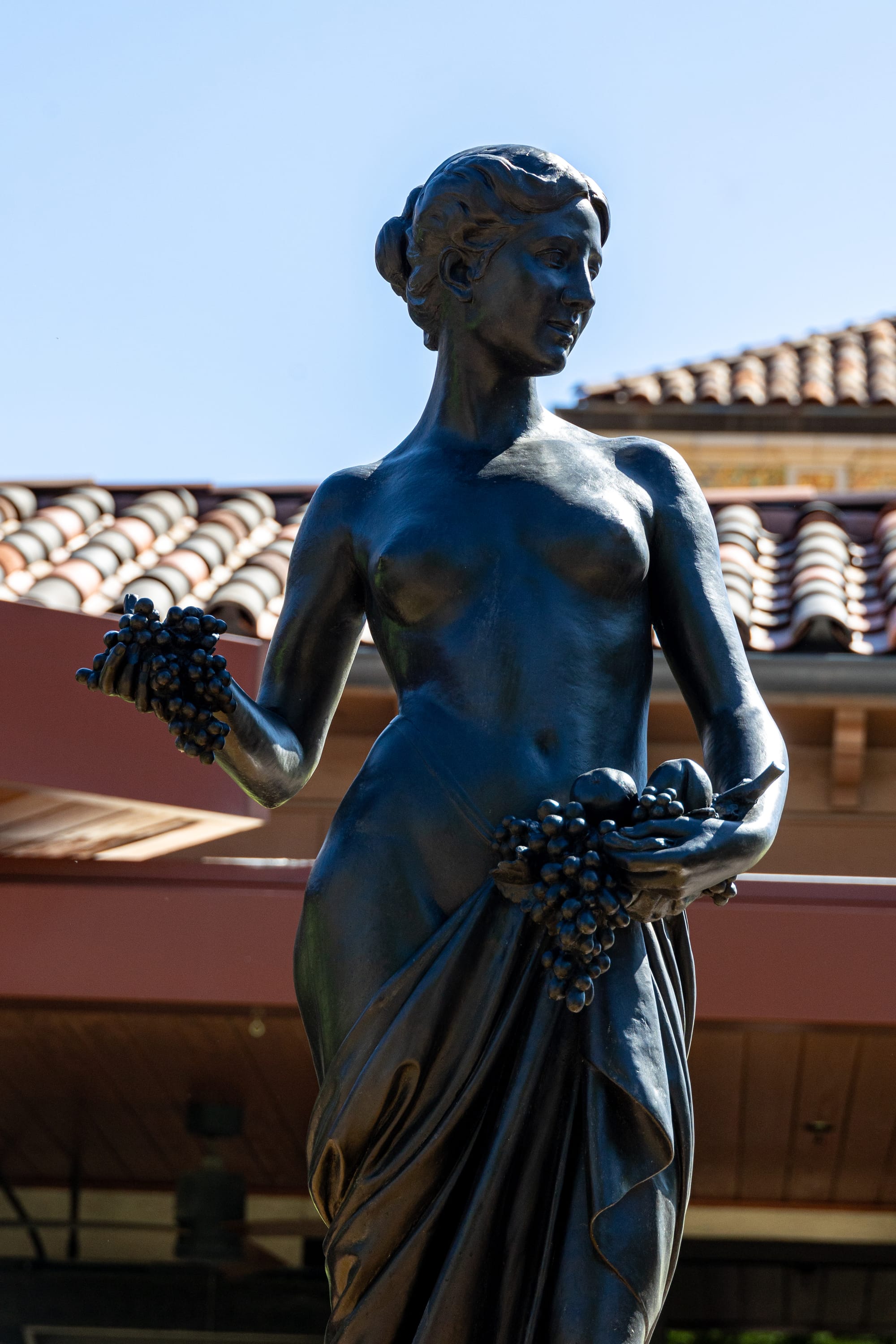 Torres que recuerdan a la Giralda, patios con fuentes de azulejos, balcones de hierro forjado y fachadas de estuco de colores cálidos crean una atmósfera sorprendentemente española. Nichols viajó a Sevilla y quedó prendado de su belleza y su planificación urbana, decidiendo replicar ese encanto en su proyecto.