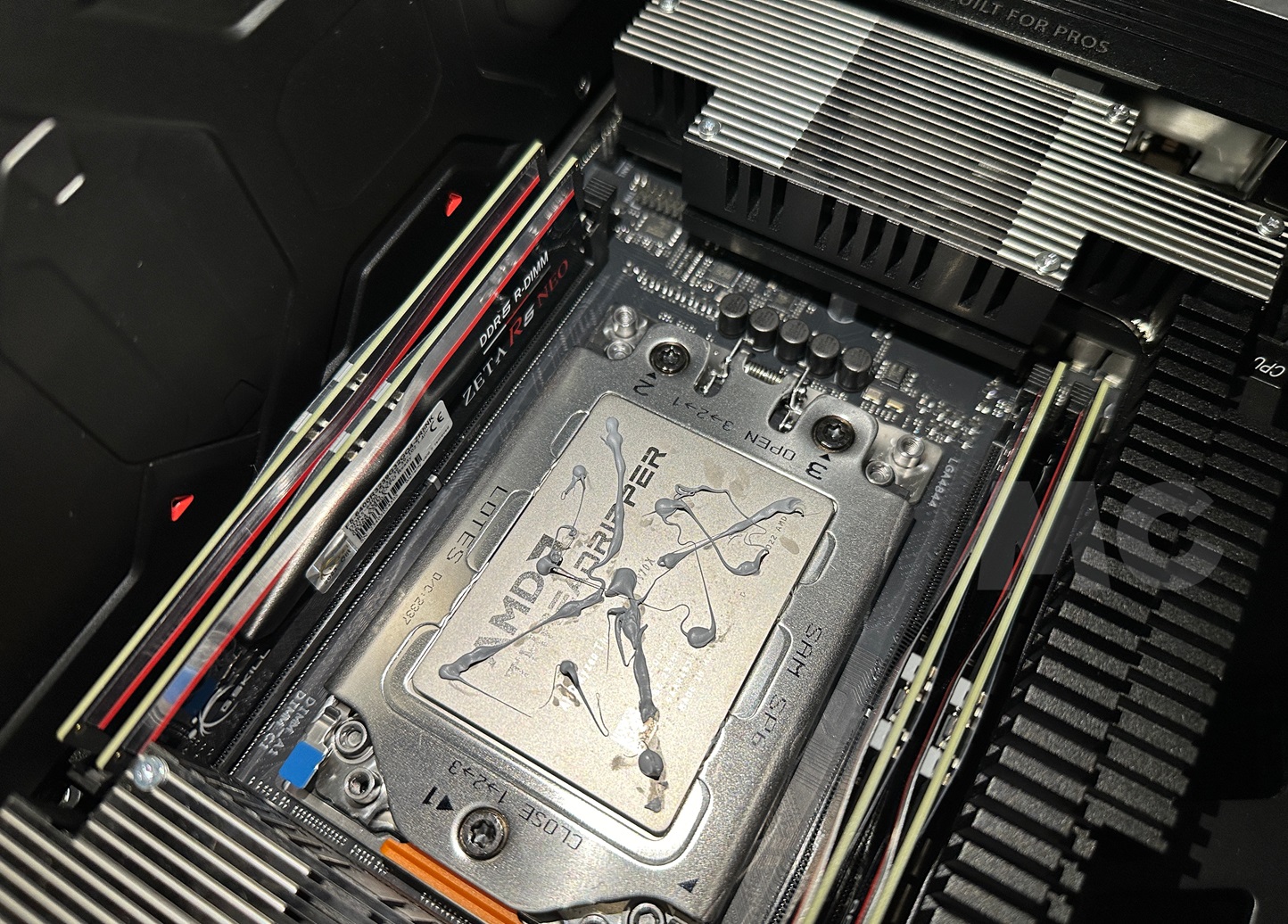- En el caso de procesadores muy grandes, como los Threadripper de AMD, deberemos hacer una «X» desde las esquinas y reforzar los cuatro huecos de esa «X» con una pequeña bolita de pasta térmica en cada una de ellas.