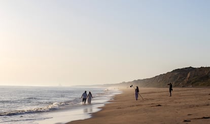Hay un rincón de la costa onubense donde cada día se vive un pedacito de verano. No importa si hace frío, invierno o mar embravecido. Está en una playa muy, muy larga, al lado de una antigua torre dorada al pie de la cual sucede todo. Hay pescadores que recorren la costa a toda velocidad en bicicletas eléctricas de ruedas anchas. Hay sesiones de fotos en las que los novios parecen decir “Sí, quiero”, mientras las novias mojan sus vestidos en sal. Hay nadadores atrevidos -o no- que aprovechan las olas. Y aquellos que prefieren la tranquilidad de la arena llena de conchas para vivir aventuras entre las páginas de un libro. También jinetes y amazonas que, por puro pasatiempo, montan a caballo en un impresionante atardecer a un paso del Parque Nacional de Doñana, territorio del lince ibérico.