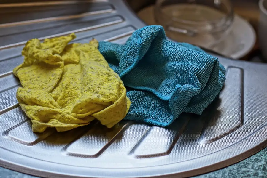 - Frote ligeramente el paño antes de enjuagarlo, solo para ayudar a soltar la suciedad que el bicarbonato ha ablandado.