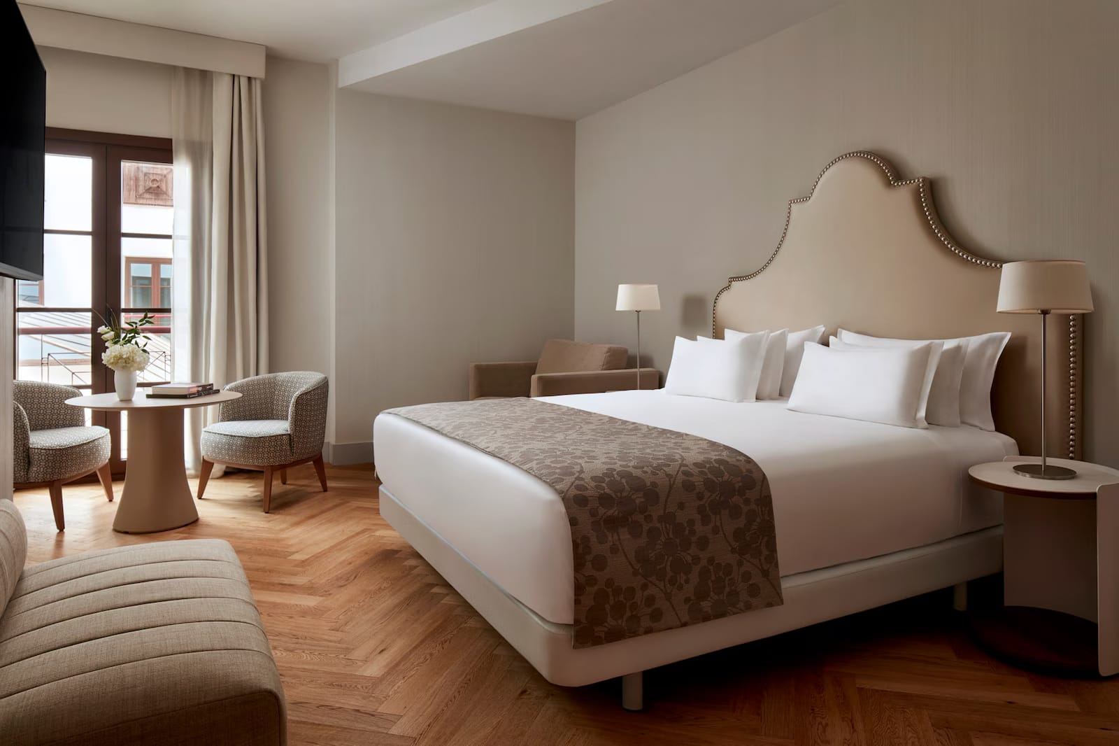 Una de las piezas más codiciadas será la Suite con vistas a la torre de la mezquita-catedral. Desde su ventana, la Plaza de Maimónides se revela bajo la luz andaluza con el alminar como protagonista del horizonte, una imagen que resume mejor que ninguna otra la apuesta del hotel por conectar al viajero con la identidad de la ciudad.