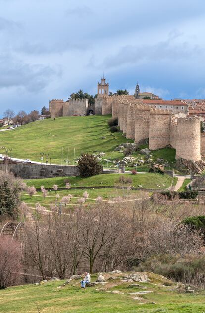 Pero es el poderoso muro, especialmente visto desde el lienzo norte, el que parece más representado. Esta muralla medieval del siglo XII que tiene el honor de ser la única fortificación defensiva que se ha conservado intacta hasta nuestros días y constituye el mejor ejemplo de arquitectura militar románica. Un cinturón impenetrable de 88 torres, 2.500 almenas y nueve puertas, que garantiza la seguridad de conventos, iglesias y palacios blasonados, y que está vinculado a la que fue la primera catedral gótica de España.