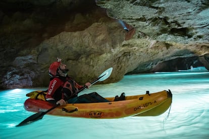 Las entrañas de la sierra de Espadán (Castellón) albergan un escenario casi único en Europa: un río subterráneo y navegable de 800 metros que discurre por el interior de las Coves de Sant Josep. Desde 2018, la empresa Viunatura propone descubrirlo con una estimulante travesía de espeleokayak, una vez que terminan los paseos en barca para grupos y la gruta se vacía de visitantes. “Se preveía como una actividad de temporada baja, y al final se vio que tenía un gran potencial y pasó a ser ofertada todo el año”, reconoce Fernando Falomir, director de esta agencia. En verano doblan las salidas diarias (18.00 y 20.00) e incluso es un producto reclamo: “Hay turistas franceses que compran un billete y visitan Castellón solo por el espeleokayak”.
