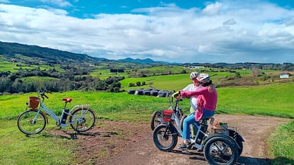 El primer paso fue construir “la bicicleta más inclusiva”, recuerda, un triciclo eléctrico invertido, perfectamente estable, que le costó 15.000 euros y meses de trabajo con la firma guipuzcoana Etnnic. Desde entonces ha ido ampliando la flota de alquiler hasta 26 unidades (entre 22 y 45 euros la hora y media, según el modelo), que cuenta también con bicis eléctricas convencionales y un modelo PASVIC: “La primera bicicleta que funciona caminando para personas que no pueden doblar la rodilla”, aclara Muñiz. Su dedicación se refleja especialmente en el diseño de los itinerarios, pensados al detalle para que puedan ser completados de forma autónoma por todos sus clientes, incluida la ruta Olímpica (20 kilómetros y rampas de desnivel considerable). Además tienen enjundia cultural: siguen rutas históricas como el Camino de Santiago y cuentan con puntos de interés como el Aula Didáctica del Neolítico del Monte Areo. En el caso de las rutas Clarinianas, cuya señalética en forma de libro abierto recoge citas de Leopoldo Alas Clarín, pasan por lugares ligados al escritor, como la casa donde pasó muchos veranos.