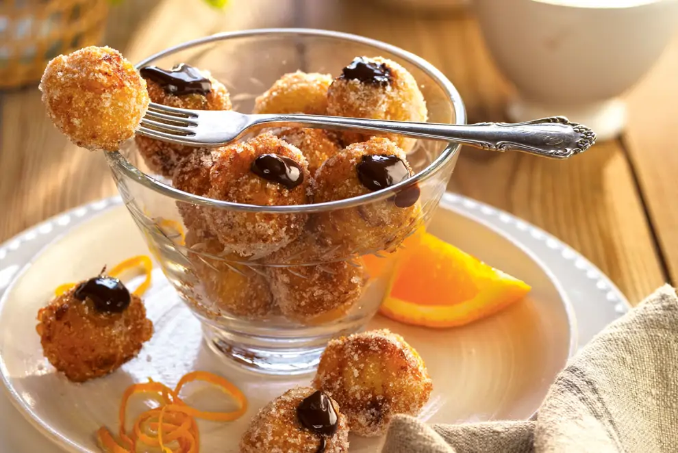 - Calentar abundante aceite y, con dos cucharaditas, dejar caer pequeñas porciones de masa a sofreír hasta que se hinchen y se doren.