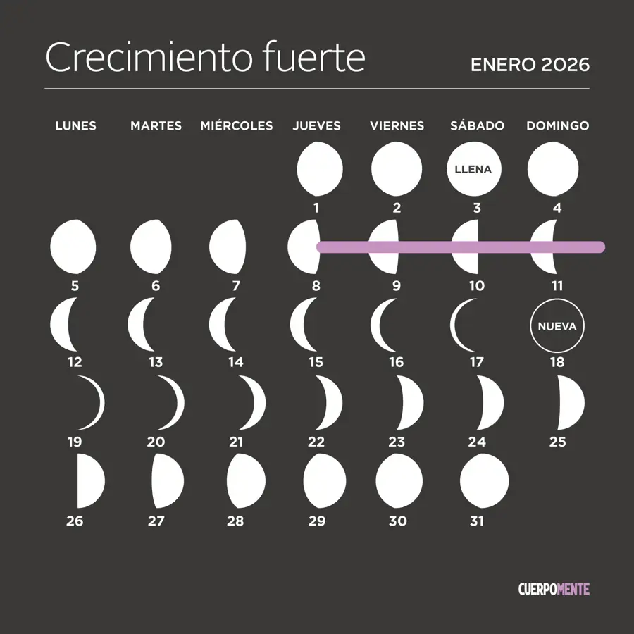 - Luna nueva: Domingo 18 de enero de 2026 a las 20:53 horas.