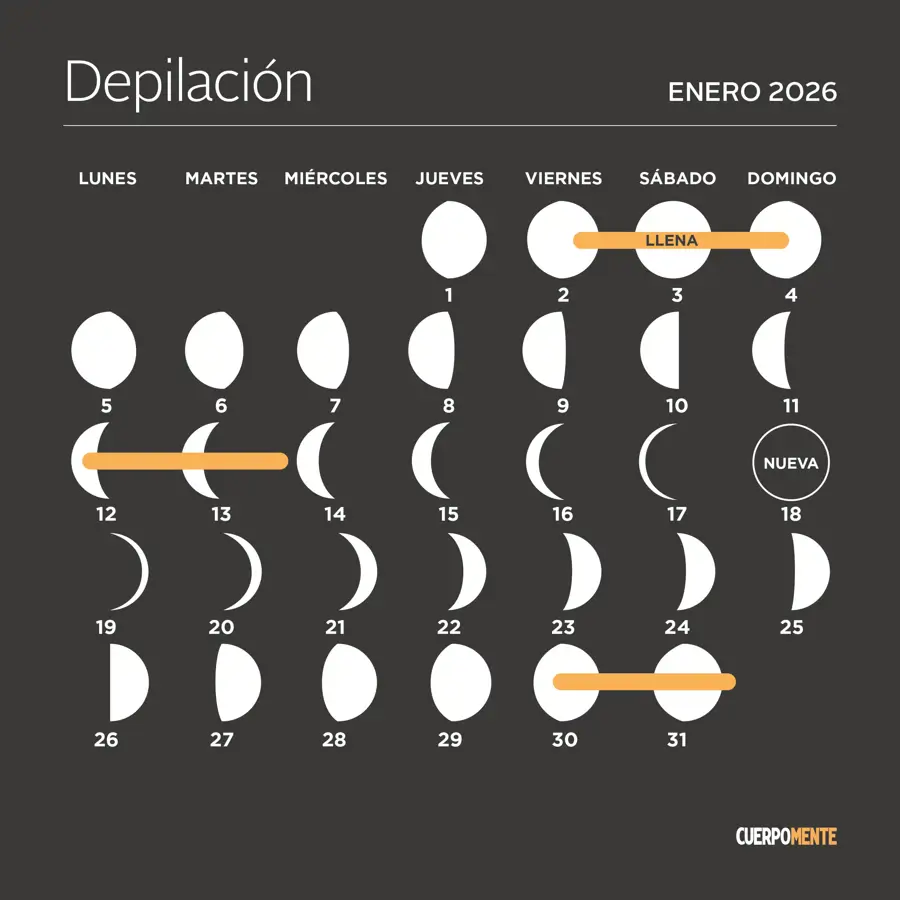 Calendario lunar de enero para cortar el cabello y depilarse con cera en 2026.
