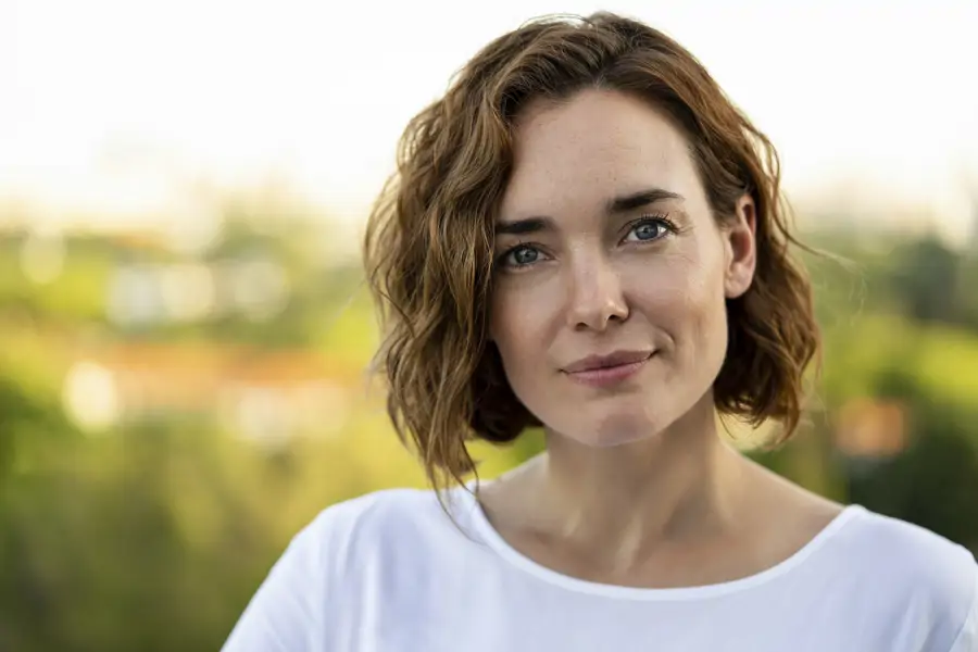 Mujer serena al aire libre