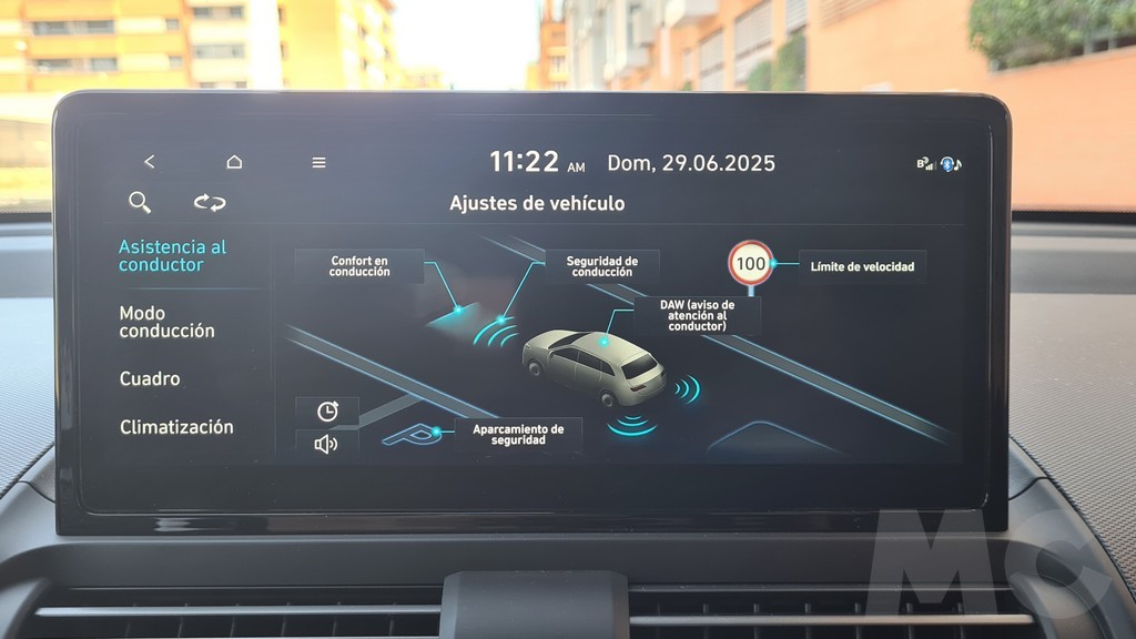 La ciudad es el hábitat natural del Inster. Sus dimensiones compactas y su reducido radio de giro (10,6 metros entre bordillos) lo convierten en un arma definitiva contra el tráfico urbano. La dirección es muy asistida lo que facilita las maniobras y la visibilidad es excelente en todos los ángulos gracias también a la altura del coche y la postura de los asientos. La respuesta del motor eléctrico es inmediata, permitiendo insertarse en rotondas y salir de semáforos con una agilidad que sorprende a vehículos más potentes. El sistema i-Pedal es especialmente útil aquí, reduciendo la fatiga del conductor en atascos al minimizar el uso del pedal de freno. La suspensión absorbe bien los baches y guardias tumbados, aunque el eje trasero puede resultar algo seco en resaltos cortos si el coche va descargado.