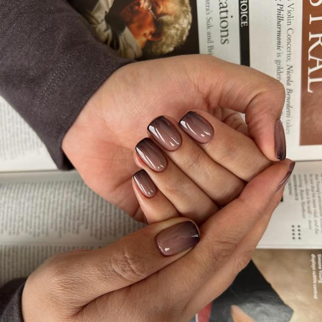 Sombreado en tonos marrones.. Los tonos marrones son una alternativa sofisticada a los tonos nude. El ombré de esta gama añade calidez y profundidad y se adapta a todos los tonos de piel. Es ideal para otoño e invierno, aunque su versatilidad permite usarlo durante todo el año. Además, ofrece lo mejor de todos los mundos. Elegante, pero no aburrido; con color, pero siempre neutral.