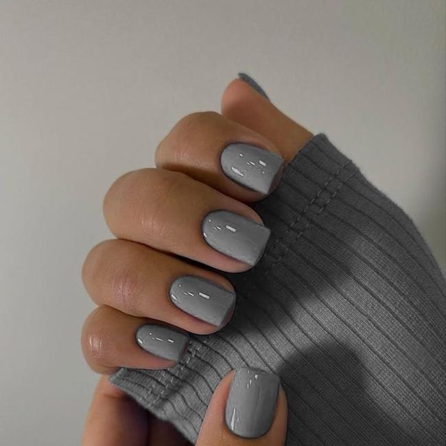 Gris. El gris es uno de los tonos más utilizados de la temporada porque transmite calma, minimalismo y estilo urbano. Es un color que funciona igual de bien en acabados brillantes y mate, y combina con cualquier look. Su versatilidad lo convierte en el nuevo negro suave para las uñas.