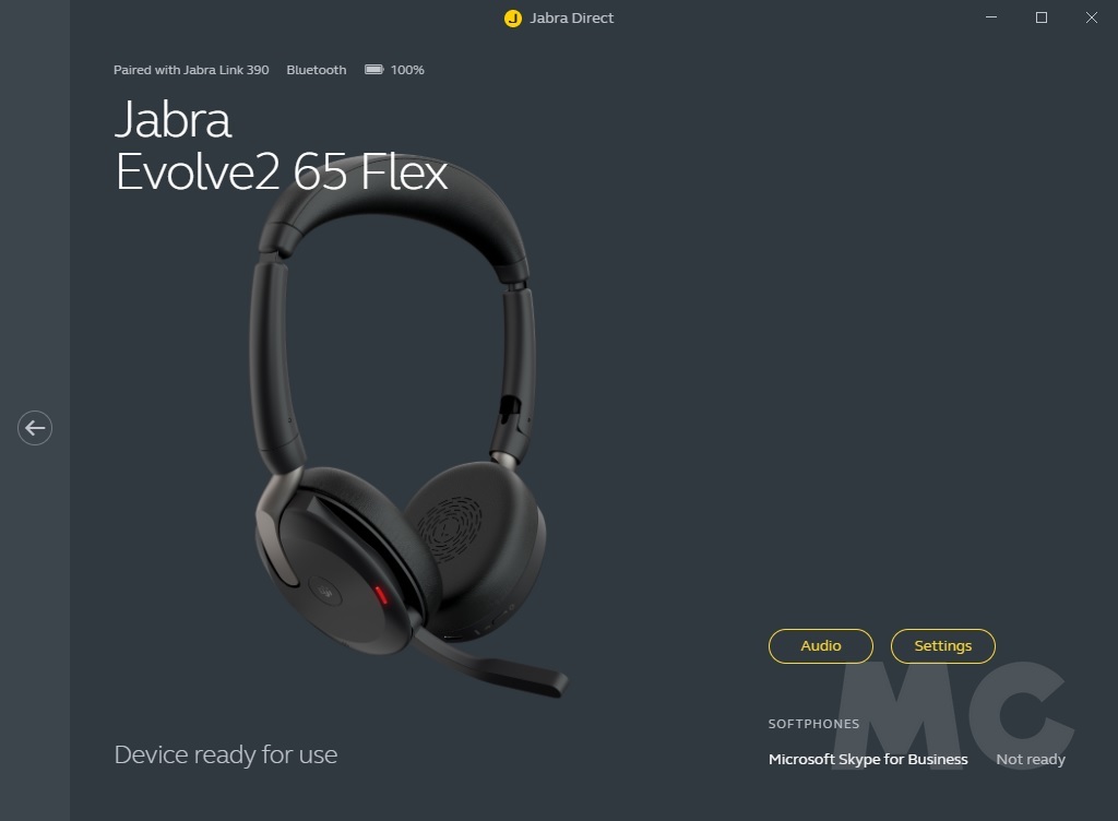En cuanto al software de gestión y personalización, los Evolve2 65 Flex son compatibles con múltiples aplicaciones según el dispositivo utilizado. Jabra Sound+ es la aplicación para smartphones iOS y Android que permite ajustar el ecualizador, configurar los niveles de cancelación activa de ruido y HearThrough, activar la función MySound que adapta el audio al perfil auditivo personal del usuario, y gestionar las actualizaciones de firmware. Para ordenadores, Jabra Direct ofrece funciones similares con opciones adicionales.