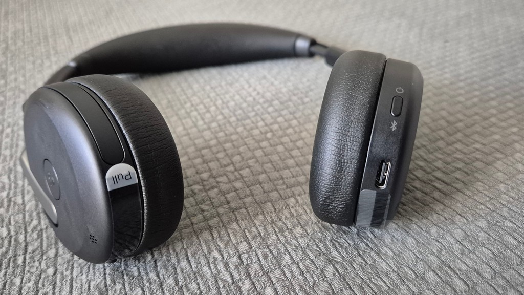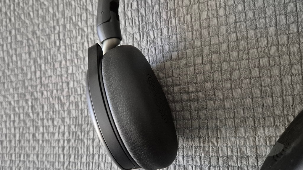 La diadema incorpora la tecnología Jabra Air Comfort, que consiste en múltiples capas de espuma perforada ultrasuave en el interior de la banda acolchada. Esta configuración distribuye el peso de manera uniforme sobre la cabeza, reduciendo los puntos de presión que pueden causar molestias durante sesiones prolongadas de uso. Las almohadillas de las copas están fabricadas en espuma viscoelástica recubierta de un material sintético suave al tacto. Aunque son de tipo supraural, es decir, que descansan sobre las orejas en lugar de rodearlas completamente, el diseño consigue un equilibrio notable entre aislamiento pasivo y comodidad. La fuerza de sujeción está cuidadosamente calibrada para mantener los auriculares en su sitio sin ejercer una presión excesiva. Hemos probado con distintas tipologías de usuario y el auricular se adapta con comodidad.