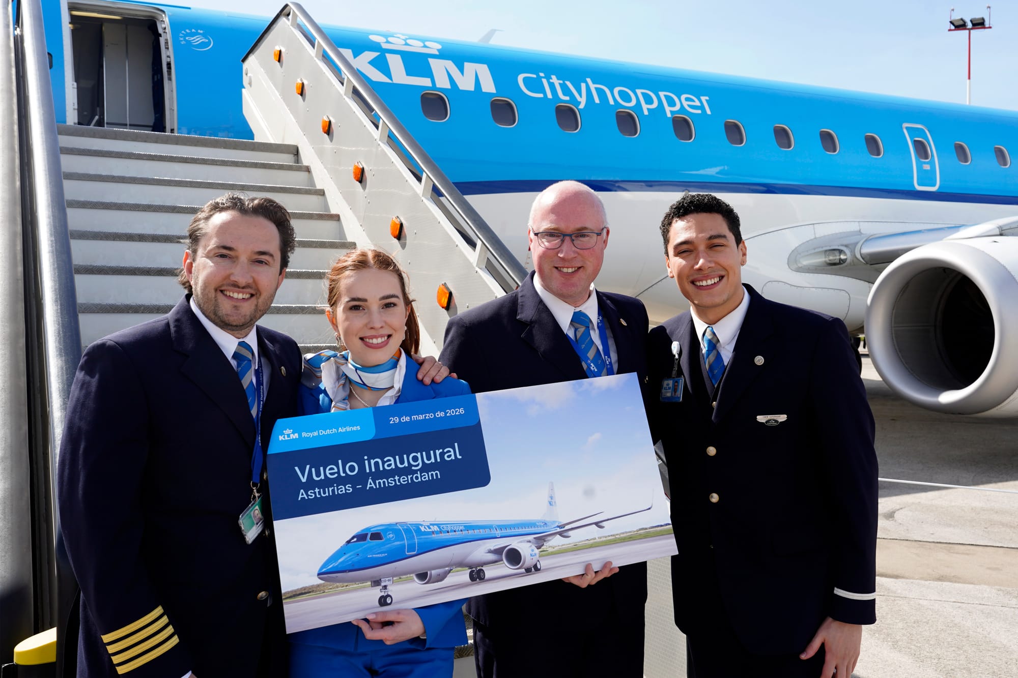 Él Aeropuerto de Asturias recibió su primer vuelo comercial el 29 de marzo KLM Real Compañía de Aviación Holandesa. TIENE 15:51A Embraer190 operado por KLM Cityhopper tomó tierra de Ámsterdam-Schiphol con 89 pasajeros a bordo, inaugurando una conexión directa hasta ahora inexistente entre el norte de España y Países Bajos.