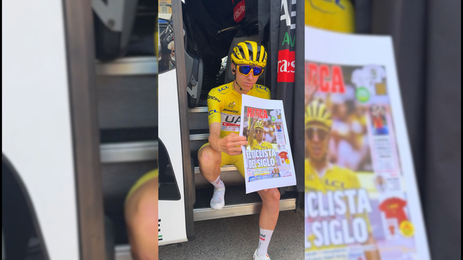 El esloveno, actual líder del tour de Francia, ha sido el protagonista de la tapa del periódico líder de la prensa deportiva españolaMARCA