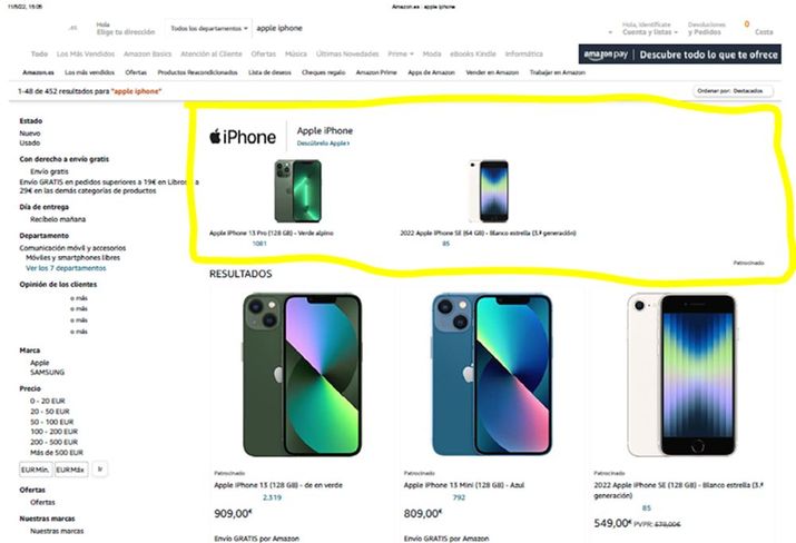 - Comenzaron a limitar el espacio publicitario. Los productos de la competencia de Apple se pueden anunciar en la plataforma de Amazon España.