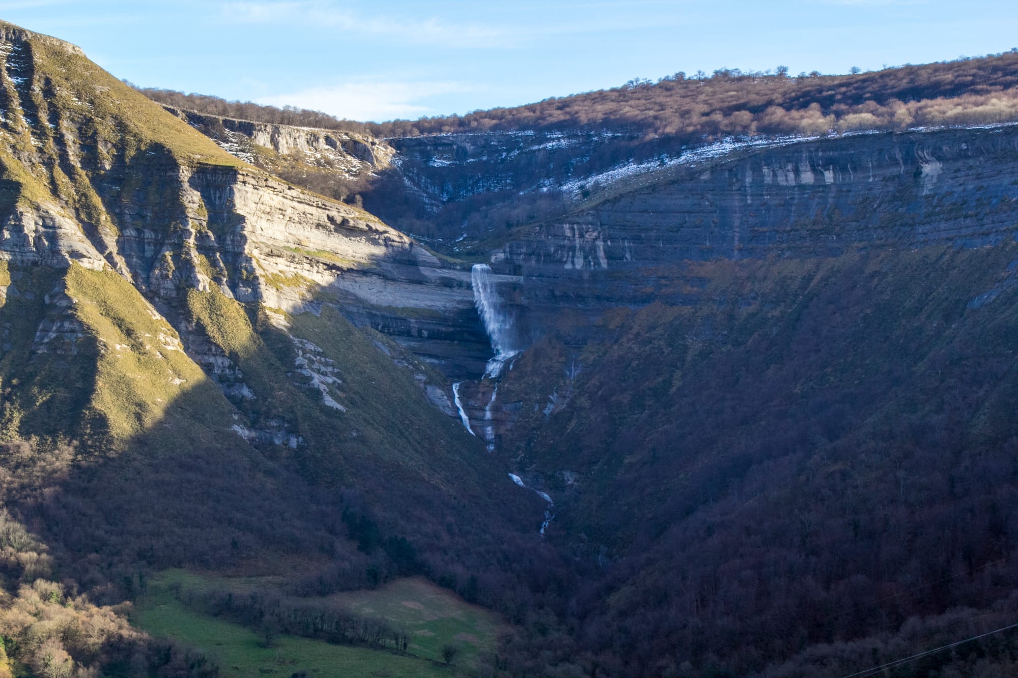 Bajando de Peña Colorada y recorriendo unos kilómetros desde el templo llegamos a uno de los espectáculos naturales más impresionantes de la provincia de Burgos. Él Río San Miguelque actúa como frontera natural entre Valle de Losa y el Valle de Menacae desde una altura de 200 metros dando lugar a la Cascada de San Migueluna cascada cuyo rugido se oye antes de ser visto.