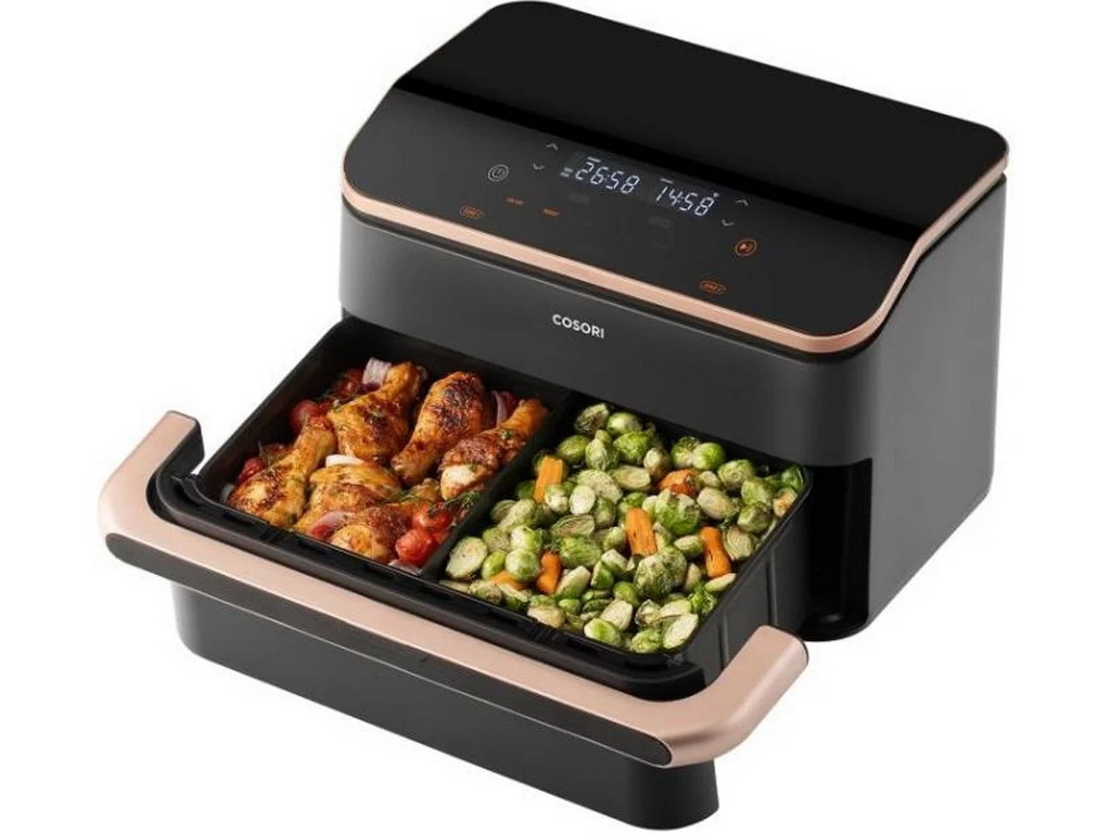 La Cosori Dual Blaze Twinfry Chef’s Edition es más que una simple freidora. Estrictamente hablando, es un horno de convección compacto con funcionalidad de freidora que lo es todo en términos de versatilidad, potencia y calidad de resultados. Todo funciona muy bien.