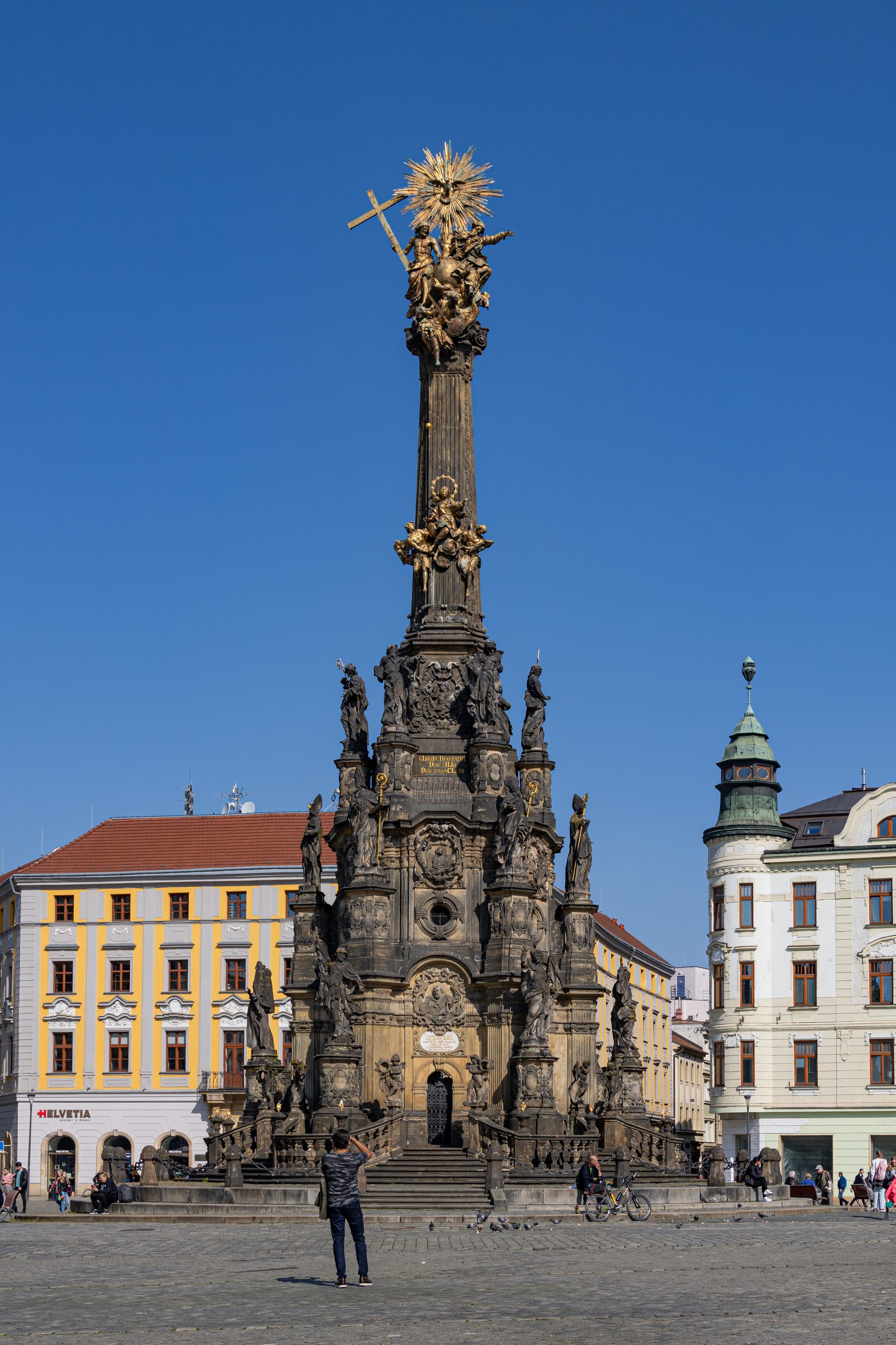 La columna fue construida para conmemorar el fin de una epidemia en el siglo XVIII. Es el ejemplo más notable de un tipo de monumento común en la Europa central católica pero, en este caso, llevado a una escala y una ambición escultórica sin precedentes en el continente. El monumento más importante de OlomoucUbicado en la plaza central, representa uno de los conjuntos barrocos más monumentales de Europa Central.