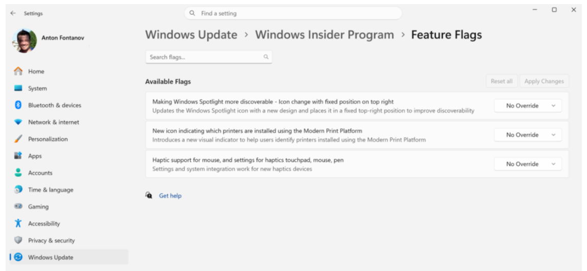 Para solucionar este problema, además de finalizar la implementación gradual de funciones en la versión beta, los participantes de Insider en el canal experimental recibirán nuevas capacidades para habilitar o deshabilitar funciones específicas a través de: Nueva página «Métricas de funciones» Se incluirá en la configuración del programa.