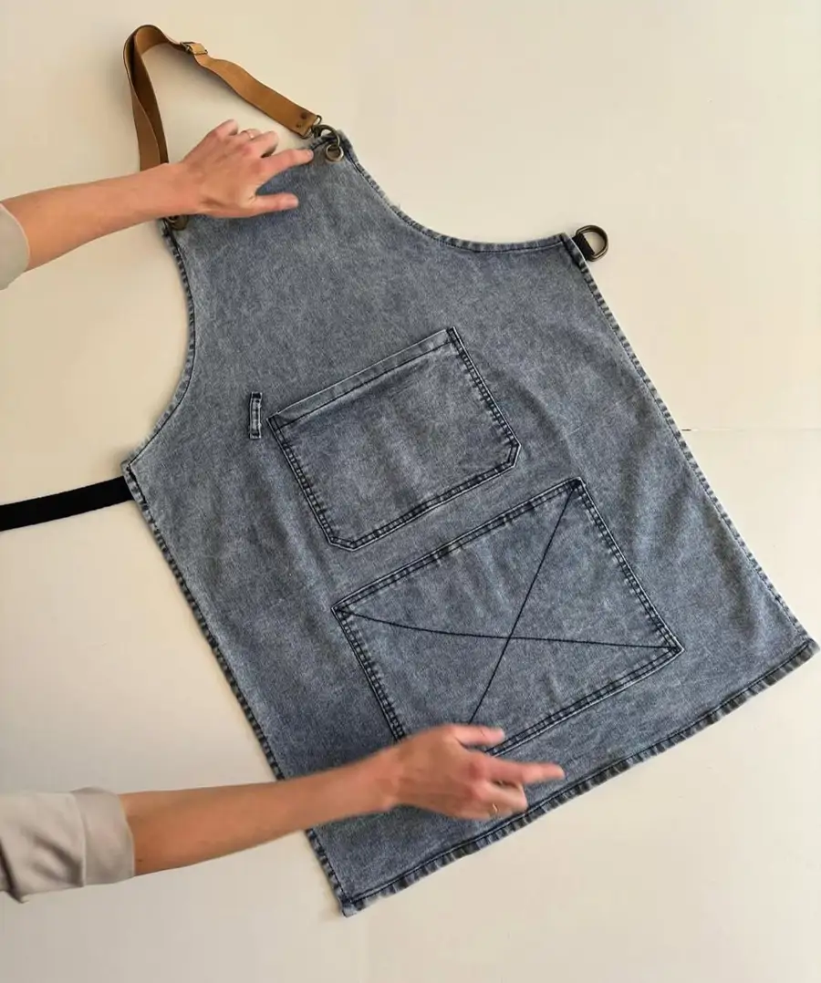 La parte superior de los jeans, con sus bolsillos incluidos, se transforma fácilmente en un delantal resistente.