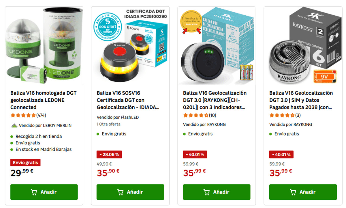 en el mercado hay más de 200 Modelos homologados de balizas de emergencia V-16 y sus precios varían entre 30 y 50 euros. La transición a este sistema trajo consigo un problema: EL tiempos de entrega de algunas empresas de electrónica.