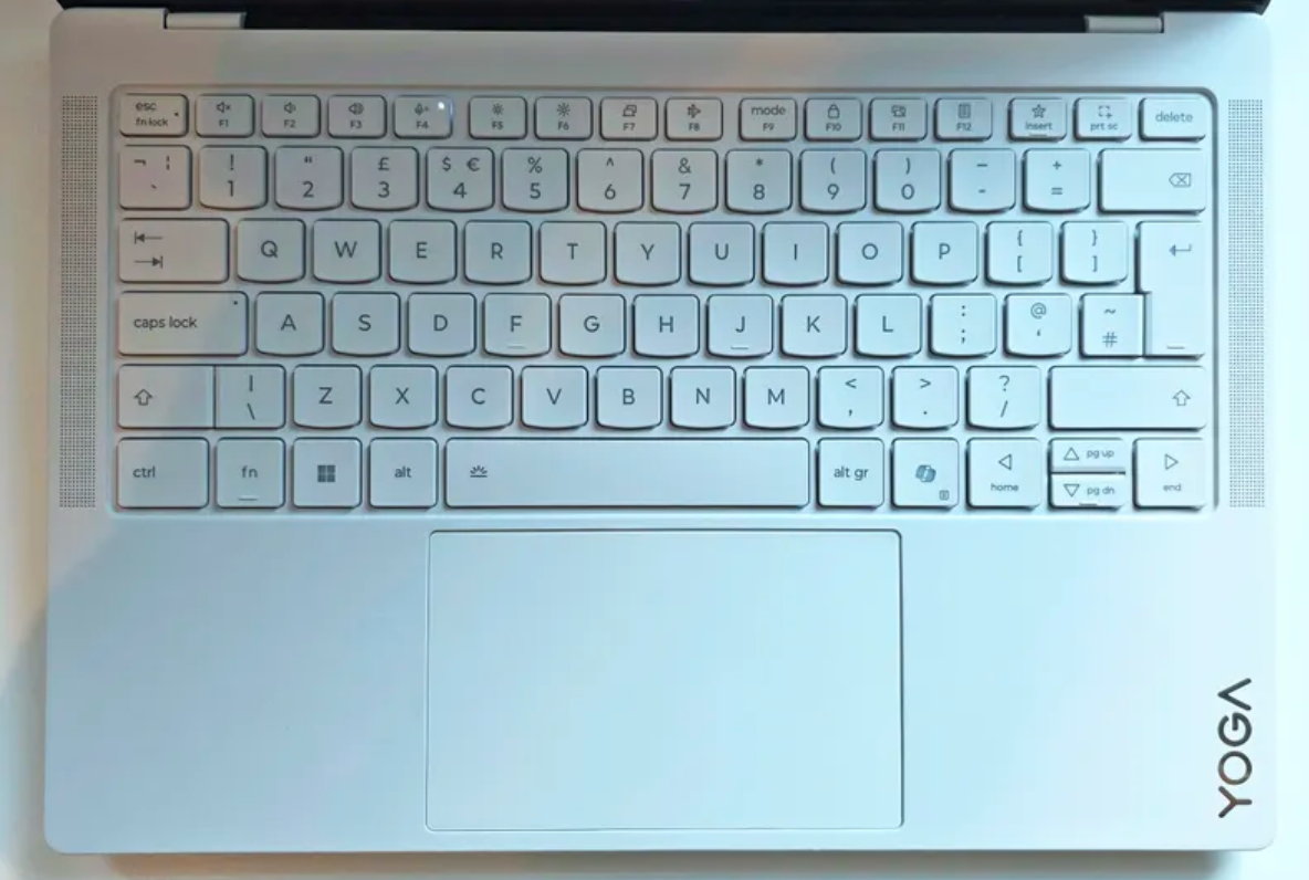 El atractivo estético del yoga es innegable.Su chasis de magnesio tiene elegantes esquinas redondeadas y hay una barra de comunicaciones elevada sobre la pantalla que alberga una cámara web de 5 MP y un sensor de infrarrojos para tareas de autenticación y seguridad a través de Windows Hello. Su teclado chiclet cuenta con un recorrido de tecla de 1,5 mm de profundidad y un panel táctil táctil Force Pad.
