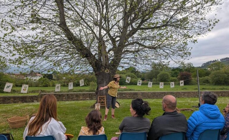 Teatro medioambiental para público infantil y familiar en Lugo de Llanera con un escenario de excepción: los jardines de la casona de los Alonso del Campo, hoy sede de la Casa de Cultura de la localidad. La amplia zona verde de la que dispone este equipamiento sirvió de marco este jueves para la narración oral y teatralizada de Paula del Estal Martínez que lleva por título «Quien a buen árbol se arrima». No faltó el árbol aprovechando el entorno para disfrutar de una propuesta cultural que maravilló a los asistentes.