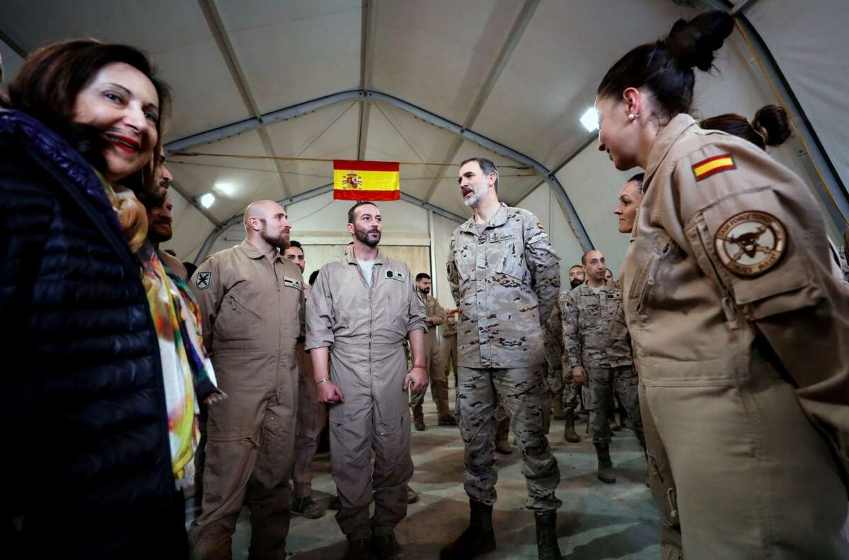 Margarita Robles durante su visita a Irak en 2019 junto a Felipe VI.